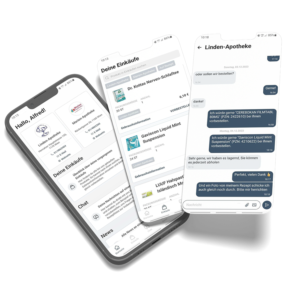 Im Chat können die Kund:innen direkt mit der Apotheke schreiben, Fragen stellen und Fotos von Produkten oder Rezepten schicken.